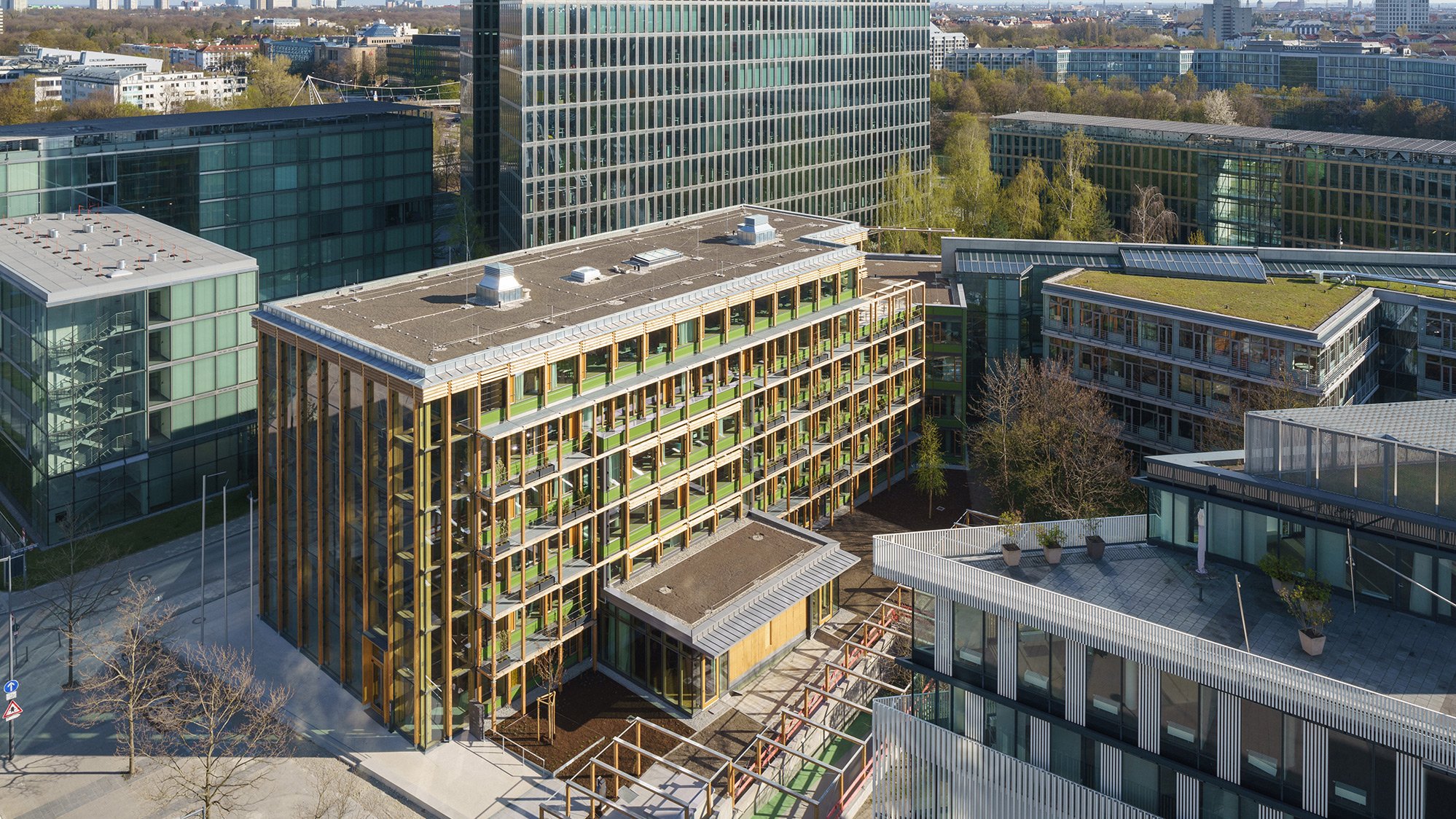 Dieser Preis überstrahlt alles und das nicht nur sprichwörtlich, weil sich auf dem sechsgeschossigem Wohnturm Bellevue di Monaco seit Ende 2020 eine grandiose Dachsportanlage befindet, die nachts hell erleuchtet auf sich aufmerksam macht. Der Leuchtturm-Effekt ist absolut berechtigt, ja man wünscht sich von Herzen und aus zahlreichen Gründen, dass dieses Projekt an vielen Orten Schule macht. Erstens, weil sich hier eine Initiative leidenschaftlich, kreativ und nicht zuletzt mit der nötigen Hartnäckigkeit dafür eingesetzt hat, dass Bestandsgebäude nicht abgerissen werden. Das war damals – leider – noch eine Pionierleistung, die nicht zuletzt gehörig Überzeugungsarbeit bei der Stadt erforderte, weil deren Verantwortliche lange Zeit für den Abriss plädierten. Zweitens, weil die Architekten hier deutlich machen, wie wenig es bei einem Umbau braucht, wenn man die Qualitäten eines Bestands erkennt und sich selbst als Architekt dem Gebäude unterordnet. Nicht das Haus muss sich hier einer neuen Nutzung anpassen, sondern es wurde die passende und sinnvolle Nutzung für alle drei Bestandsgebäude gesucht.
